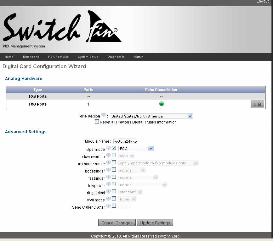 I don't know if this is related to the setting in FXO. Try change some of the settings for the FXO