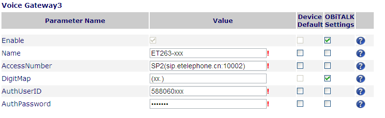 因为default是美国的settings,我们要改为当地PSTN Ring Detection,disconnection tone,CID 因为你的OBi110在不同的Telco,所以都要三地分别更改。