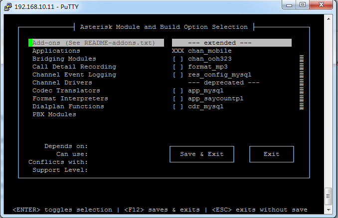 1. After the installation of Asterisk engine described in the previous is complete, you can start to install the Asterisk-GUI using the following command