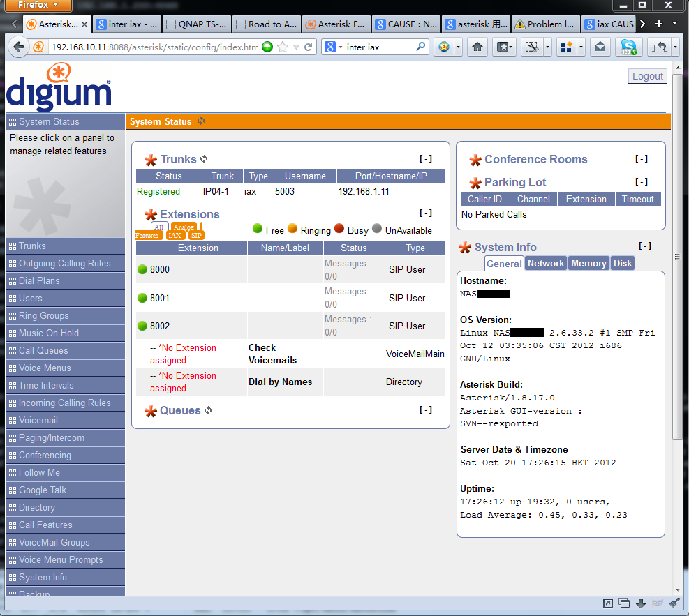 Now the QNAP TS-259 Pro is installed with Asterisk 1.8.17.0 version. Since there is a new version of Asterisk-GUI which includes the Asterisk 1.8 interface, we do not need to download the Asterisk-GUI source code for compilation.